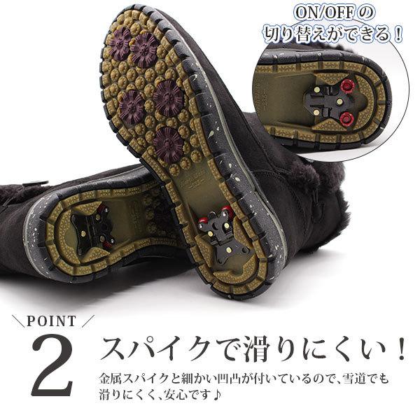 靴底にはスパイクがついているので、滑りやすい冬や雪国でも安心してお履きいただけます。