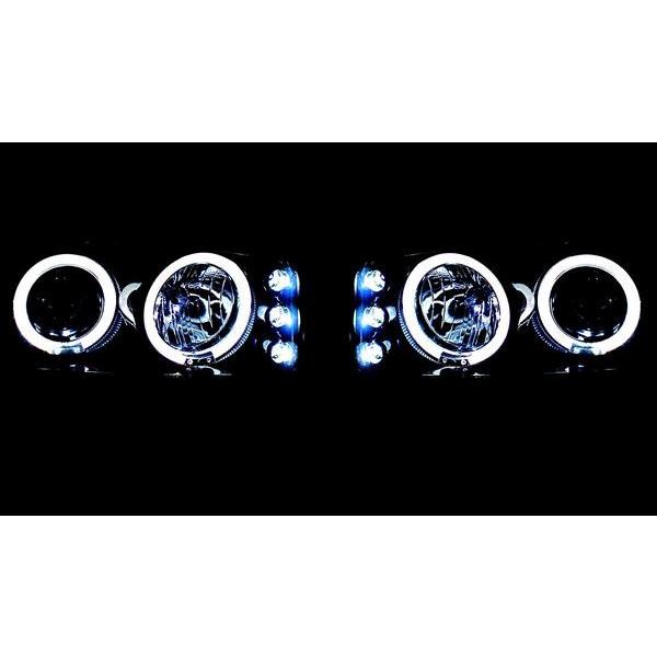 特注日本光軸 GMC ユーコン デナリ シエラ LED イカリング プロジェクター ヘッドライト クローム 左右 セット ライト ヘッドランプ 送料無料