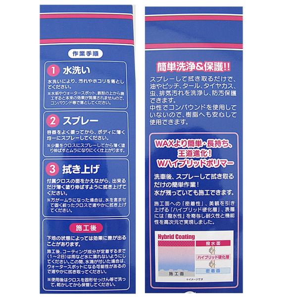 ・水洗い洗車後スプレーして拭きとるだけの簡単作業