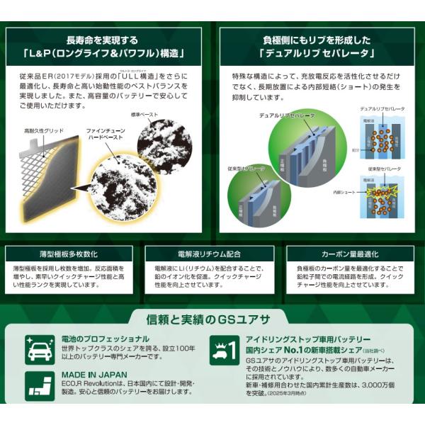 ER-N-75/75B24L GSユアサ ジーエス・ユアサ バッテリー エコアールレボリューション ロングライフ アイドリングストップ対応(ER-N-65/75B24Lの後継品)