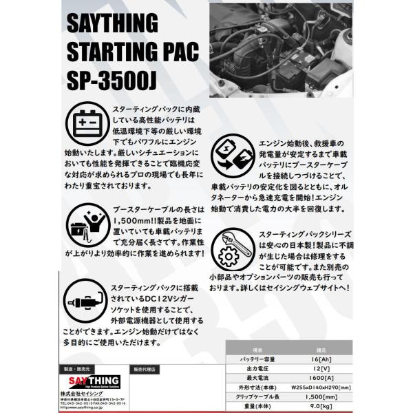 SAYTHING SP-3500J スターティングパック エンジンスターター/ポータブルバッテリーセイシング (1500mmロングケーブル)