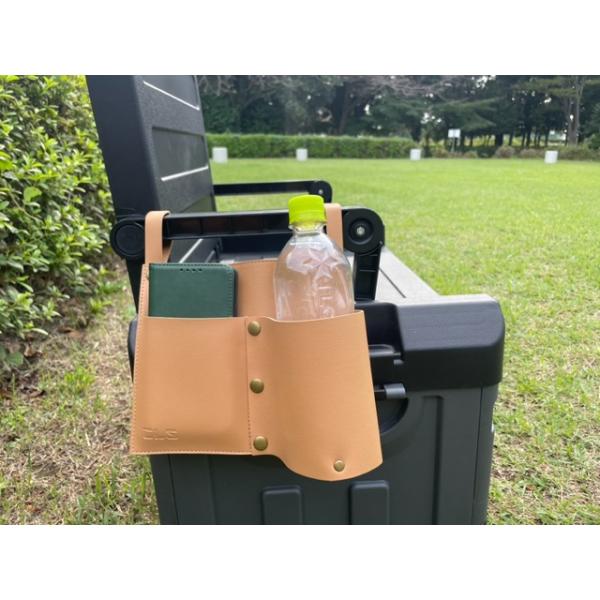 【フェイクレザー】アウトドアチェア ドリンクホルダー 小物入れ キャンプ デスク 【キャメル】