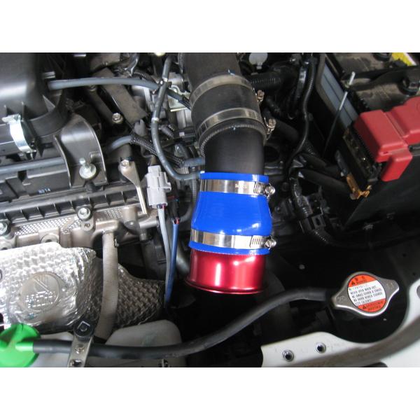 ファンネルは極薄のアルミ製でブルーとレッドをご用意。4層シリコンホースはブルーのみとなります。SZ-005のアルミパイプに商品を取り付けてください。(SIMOTAのシリコンホースと純正吸気口を本商品と交換します)
