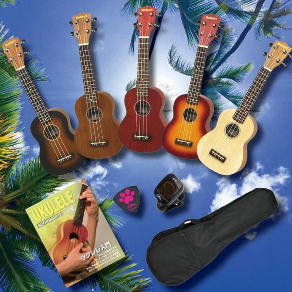ウクレレ 初心者 Maikai MKU-1 ソプラノ セット DVD付き教則本 ケース チューナー ピック カラー選べます ランキング1位獲得