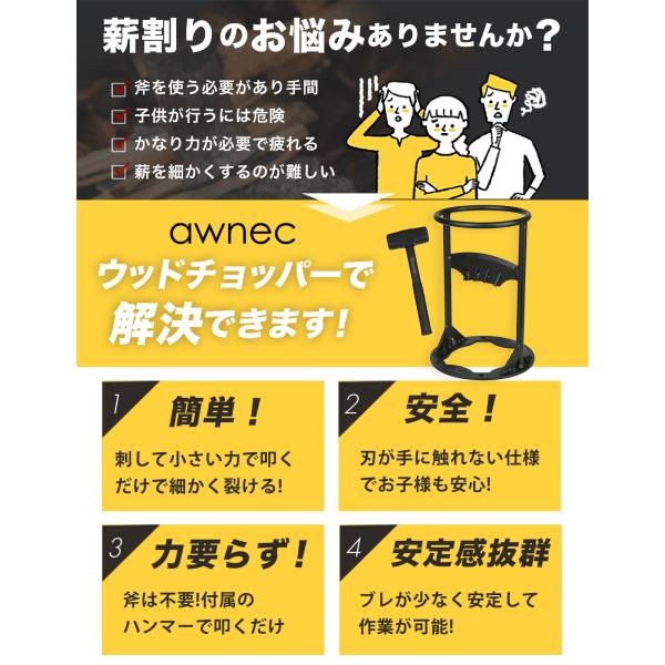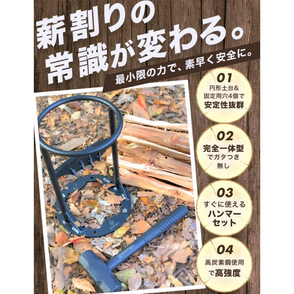 薪割り台 薪割り ハンマー付き 4つ穴固定 日本ブランド キャンプ 薪割り機 薪割り器 斧 ウッドチョッパー 安全設計 アウトドア 薪ストーブ 焚き火 鉈 awnec