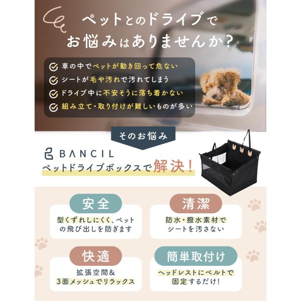 ドライブボックス 2サイズ 犬 車 シート ペットドライブボックス ドライブシート 折りたたみ式 小型犬 中型犬 大型犬 車用ベッド 防水 飛び出し防止 BANCIL