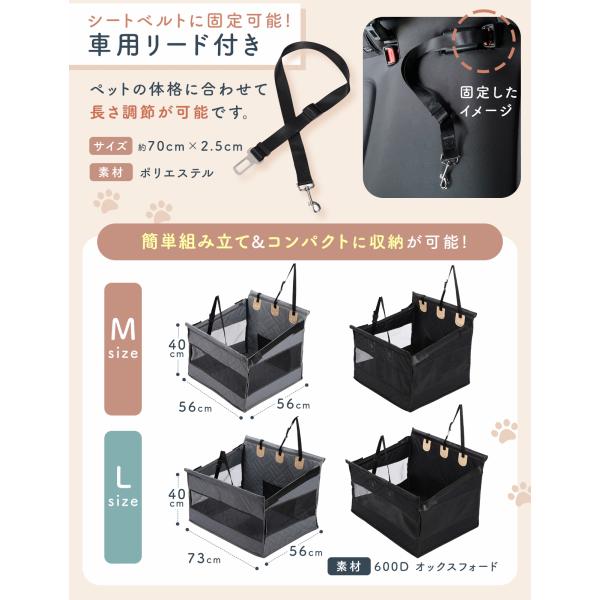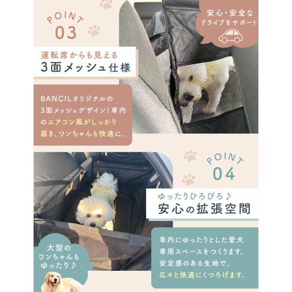 車のサイズ、わんちゃんの大きさに合わせて選べる2サイズ!愛犬とのドライブを安全で快適にします。