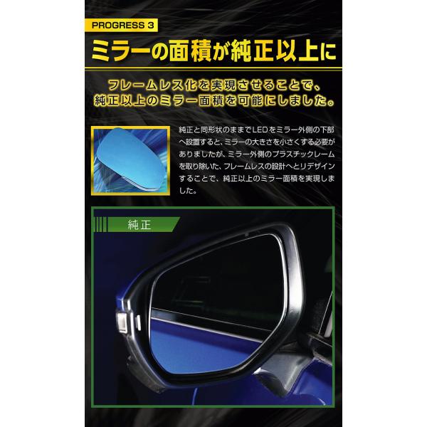 フレームレス設計で純正以上の視野の広さを実現しました!