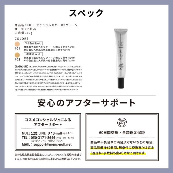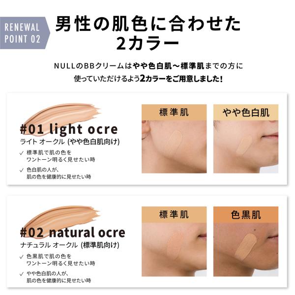 NULL BBクリーム 【 ニキビ跡 毛穴 テカリ 肌の赤み くすみ 】をメーキャップ効果で、ムラなくカバー。 日焼け止め 効果も。 メンズ ナチュラルカバーBBクリーム