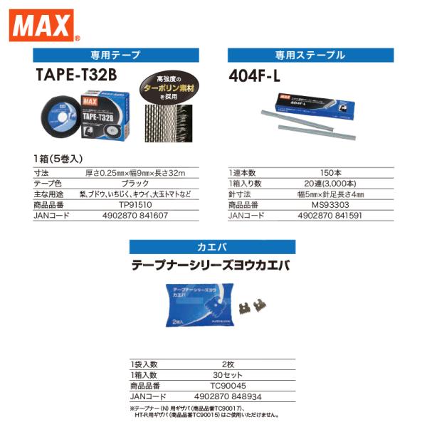 MAX <消耗品セット品>マックス 誘引結束機 強保持力テープナー 大口径タイプ HT-S60E + TAPE-T32Bテープ + 404F-Lステープルセット品 + カエバ