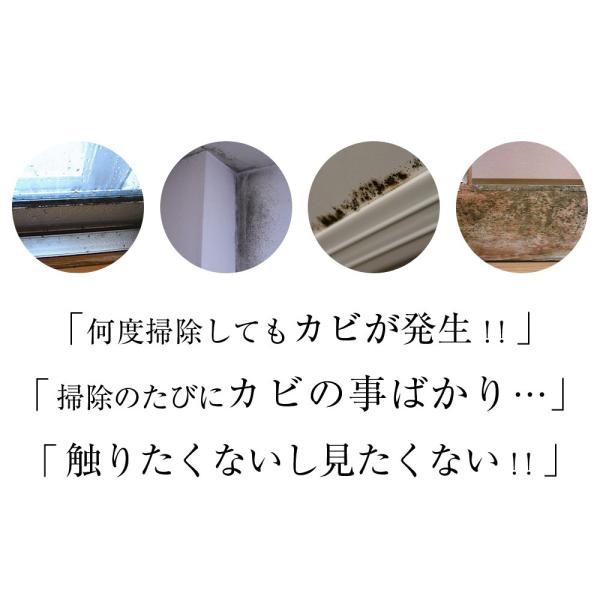 独自の技術により乾燥すれば人畜無害になります。黒カビ・青カビ・赤カビ・緑カビ・白カビ、どんなカビにも対応。
