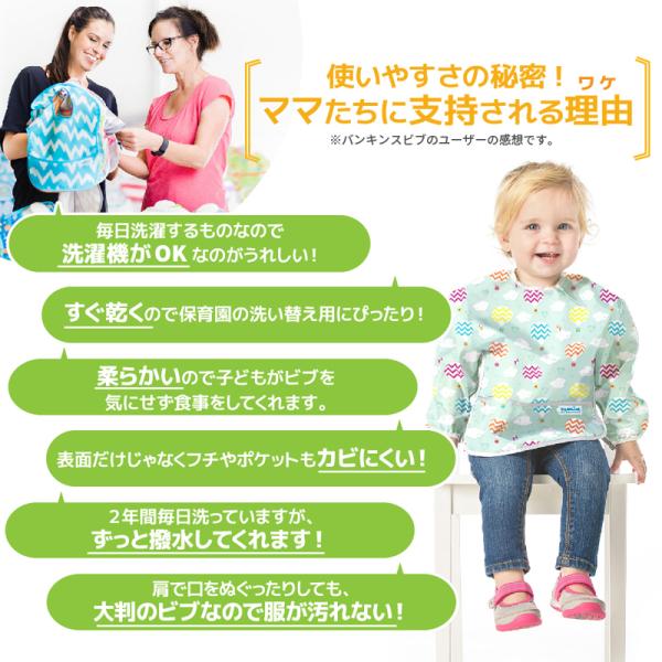 食事はもちろんのこと、お絵かきや粘土あそびなど洋服が汚れやすいシーンにも大活躍!