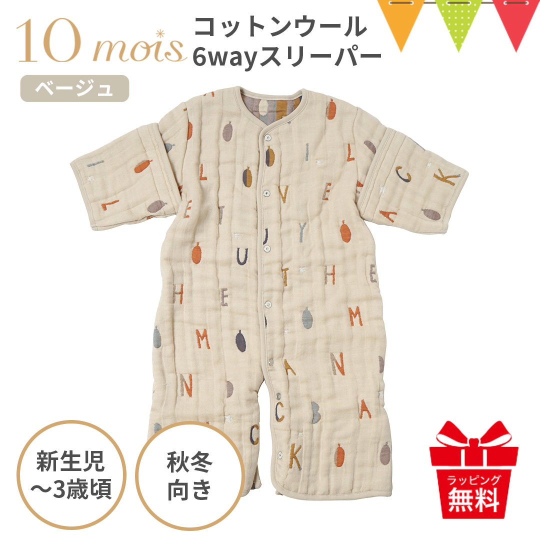 レビュー特典付 10mois(ディモワ) ふくふくガーゼ(6重ガーゼ)コットンウール6WAYスリーパー ベージュ