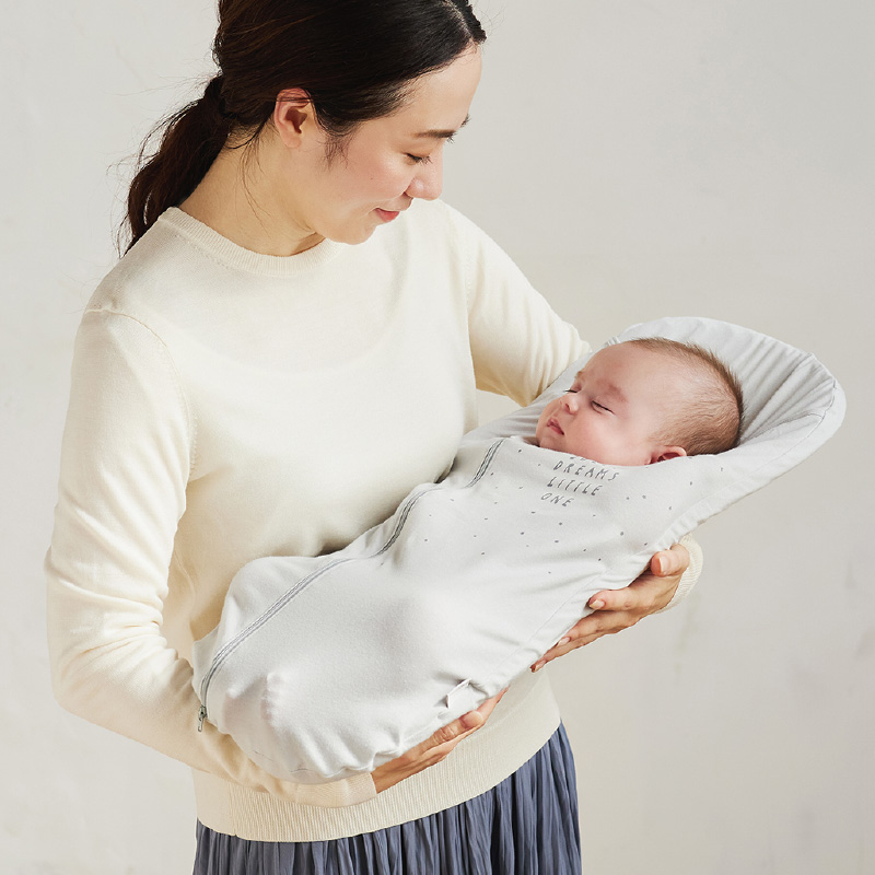 手足を包みこむことでモロー反射対策にもなる新生児用のおくるみ
