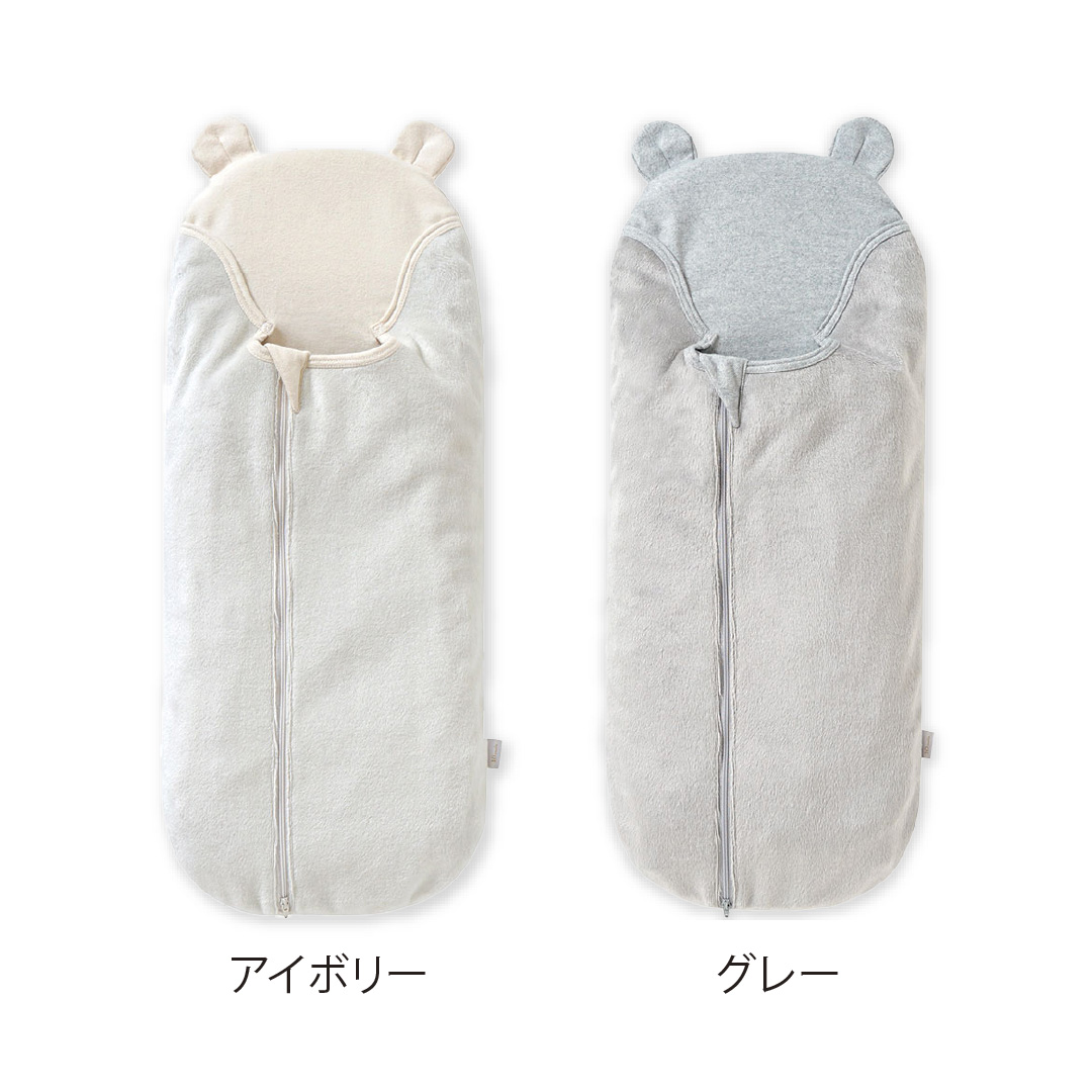 起毛ベロアを使用した冬素材のたまごマットおくるみsleep首のすわっていない赤ちゃんが寒い冬でもポカポカ快適に過ごせる”くま耳付き”デザインのたまごマットおくるみ