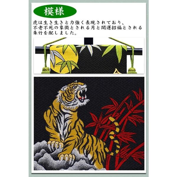 京都西陣の金襴織 男の子用 男子 男児 名前旗 月 虎 トラ タイガー 黒色スタンド 飾り台付き 黒旗 金糸刺繍 金文字 全長45cm 命名旗 命名紙 名入れ掛軸 掛け軸 名入れ お名前入れ お名前入れタペストリー タペストリー 生年月日 端午の節句 初節句 節句 節句用品 五月人形 兜飾り 鎧飾り 脇飾り かぶと飾り よろい飾り ご出産祝い お宮参り お食い初め 御祝 お祝い 記念 贈り物 日本製 国産
