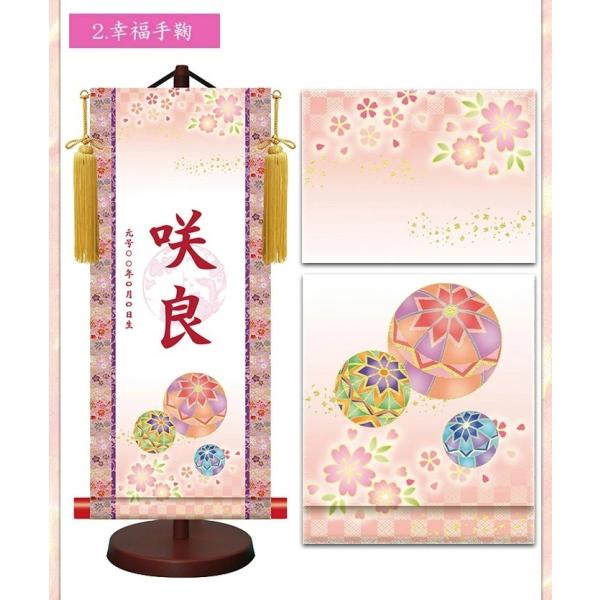 名前旗 モダン友禅名入掛軸 梅紋入り 女の子 名前旗 小 全長45cm お名前入れタペストリー スタンド付き 桃の節句 ひな祭り ひな人形 脇飾り 三幸
