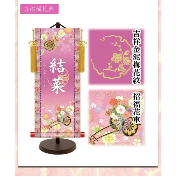 名前旗 モダン友禅名入掛軸 金紋入り 女の子 名前旗 小 全長45cm お名前入れタペストリー 掛軸 スタンド付き 桃の節句 ひな祭り ひな人形 脇飾り 三幸