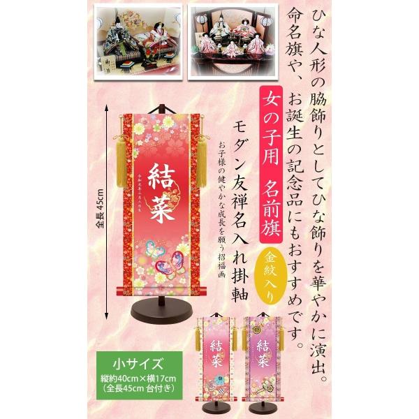 女の子 名前旗 小 全長45cm モダン友禅名入掛軸 金紋入り 名入れ掛軸 命名旗 掛け軸 モダン友禅名入掛軸 女の子用 女子 女児 名前旗 スタンド付き 飾り台付き 招福蝶々 招福手鞠 招福花車 金紋 座敷旗 命名旗 命名紙 名入れ掛軸 掛け軸 名入れ お名前入れ お名前入れタペストリー タペストリー 生年月日 桃の節句 初節句 節句 節句用品 ひな人形 雛人形 脇飾り ひな飾り 雛飾り ご出産祝い お宮参り お食い初め 御祝 お祝い 記念 メモリアル 行事 贈り物 メモリアルギフト ギフト 日本製 国産