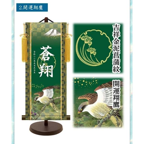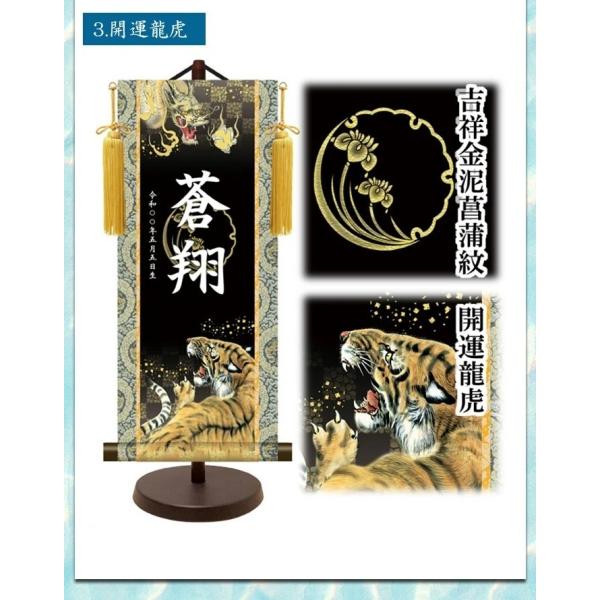 モダン友禅名入掛軸 男の子用 男子 男児 名前旗 スタンド付き 飾り台付き 開運武者 開運翔鷹 開運龍虎 龍 竜 ドラゴン 虎 トラ タイガー 金紋 命名旗 命名紙 名入れ掛軸 掛け軸 名入れ お名前入れ お名前入れタペストリー タペストリー 生年月日 端午の節句 初節句 節句 節句用品 五月人形 ごがつ人形 こどもの日 脇飾り 兜飾り 鎧飾り かぶと よろい ご出産祝い お宮参り お食い初め 御祝 お祝い 記念 贈り物 日本製 国産