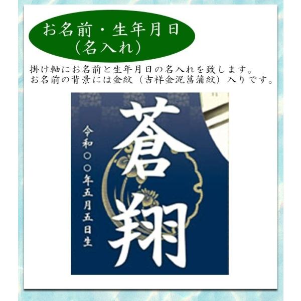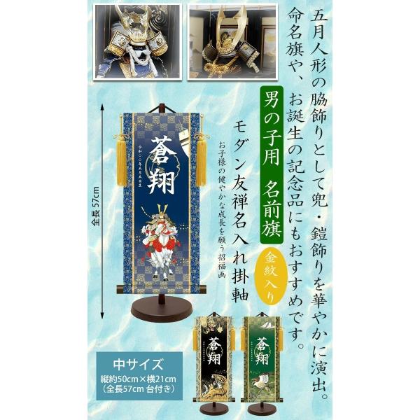 名前旗 モダン友禅名入掛軸 金紋入り 男の子 名前旗 中 全長57cm 名入れ お名前入れタペストリー スタンド付き 端午の節句 五月人形 三幸