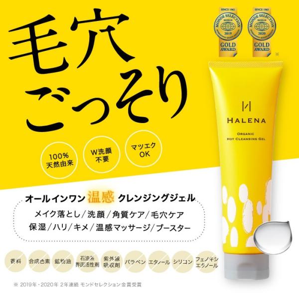 100%天然由来・国産オーガニック・9つの無添加・弱酸性処方で優しさにとことんこだわったHALENA ホットクレンジングジェル