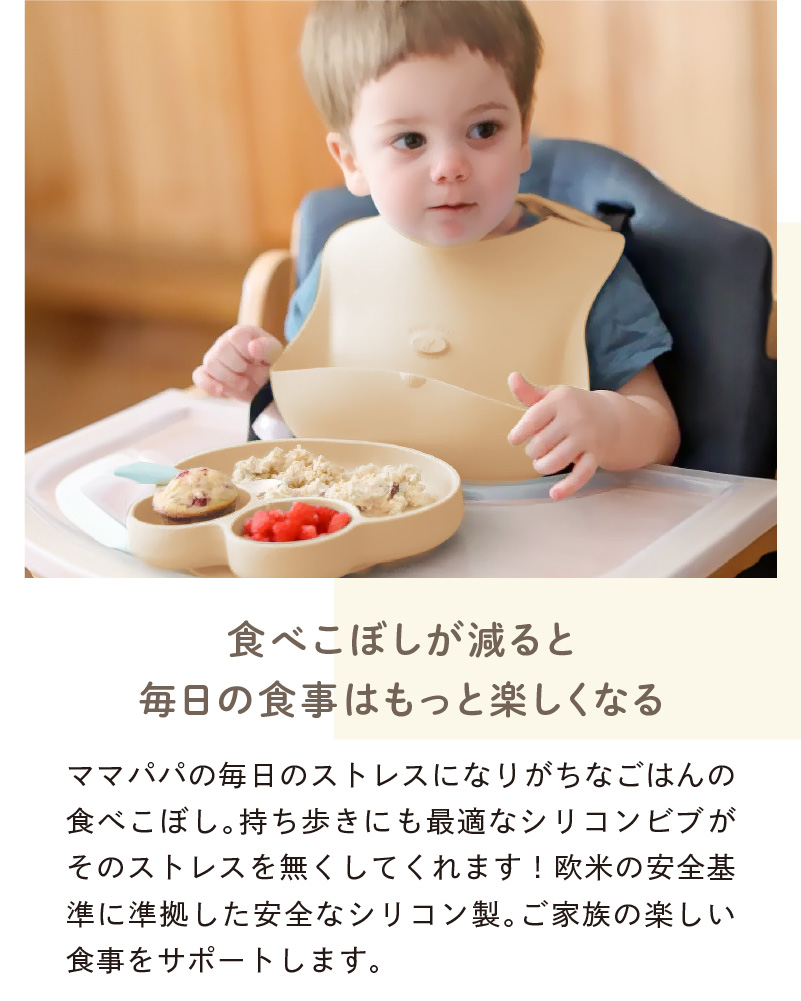 食べこぼしもしっかりフォロー!楽しいお食事の強い味方です。