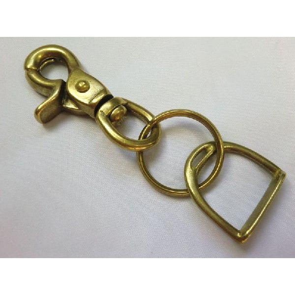 【釣り針 ベルトフックキーホルダー キーリング付き】ゴールドブラス 真鍮無垢製