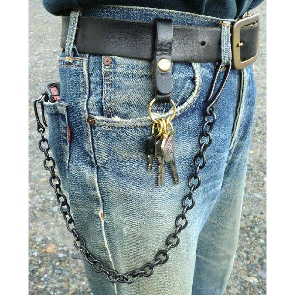 真鍮製(黒塗り ダール加工)の「小判型釣り針フックウォレットチェーン」