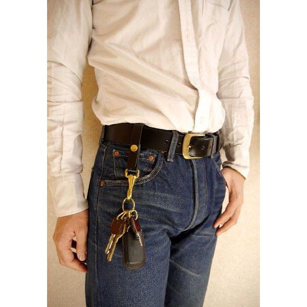 真鍮製 ブラス カクナスカン付き 栃木サドルレザー製 ベルトループ キーホルダー 【ブラック ナチュラル レッド ブラウン】