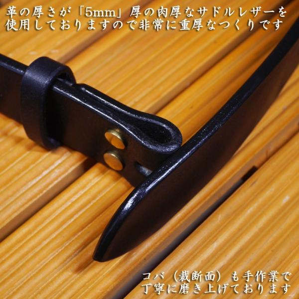 幅40mm 5mm極厚 黒本革多脂革 完全オーダーメイドベルト 馬具職人ハンドメイド 栃木レザー ブラック ベンズサドルレザー