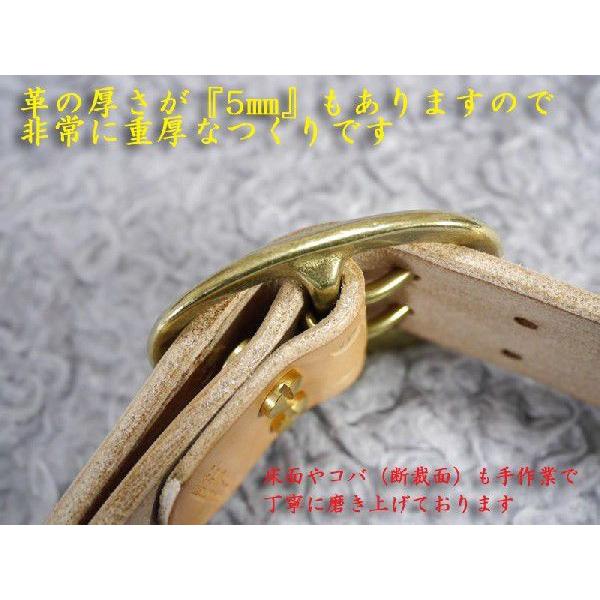 幅40mm 5mm極厚 多脂革 完全オーダーメイド 真鍮製ダブルピンバックル付き 馬具職人ハンドメイド 栃木レザー ヌメ本革 ベンズサドルレザー