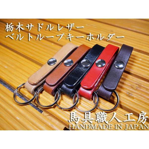 シルバーキーリング付き 栃木サドルレザー ベルトループ キーホルダー 【ダークブラウンorブラウンorブラックorナチュラルorレッド】