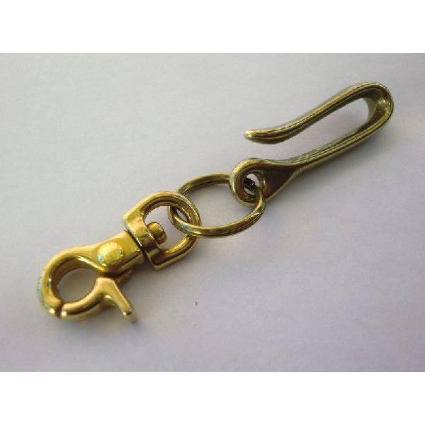 【釣り針 ベルトフックキーホルダー キーリング付き】ゴールドブラス 真鍮無垢製