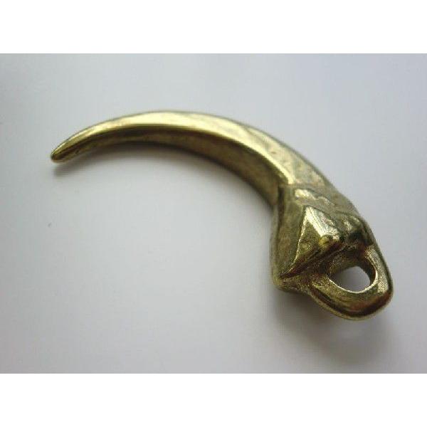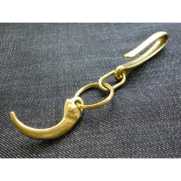 真鍮無垢製(ゴールドブラス) 動物の牙の形状をしたキーホルダー