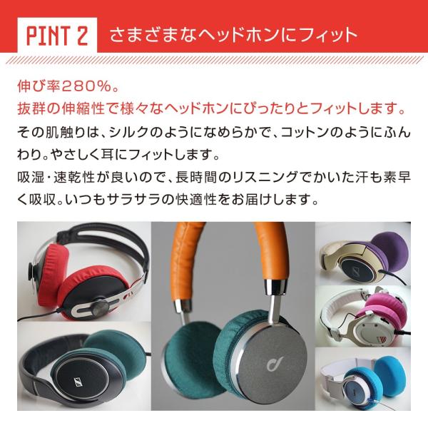 抜群の伸縮性(伸び率最大280%)で様々なヘッドホンにフィットするミミマモmimimamo スーパーストレッチヘッドホンカバー。