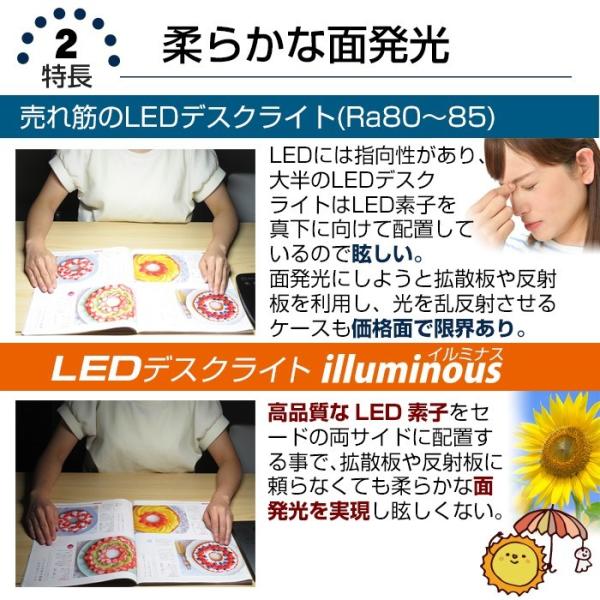 デスクライト おしゃれ 卓上ライト LED 目に優しい 良い 疲れない 勉強 仕事 illuminous イルミナス 光 演色性 Ra