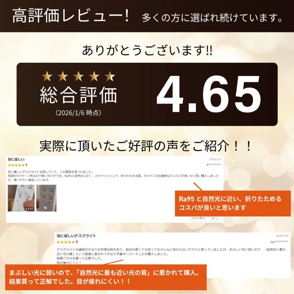 自然光に一番近い光の質、目に優しいLEDデスクライト
