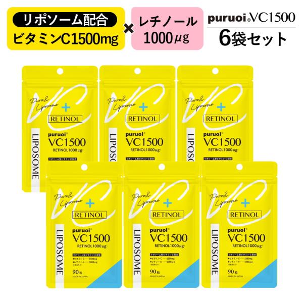 【6袋セット】プルオイVC1500 (90粒×6袋 合計540粒入/約90日分) ビタミンC ビタミンA レチノール 持続型 飲むレチノール サプリ 日本製