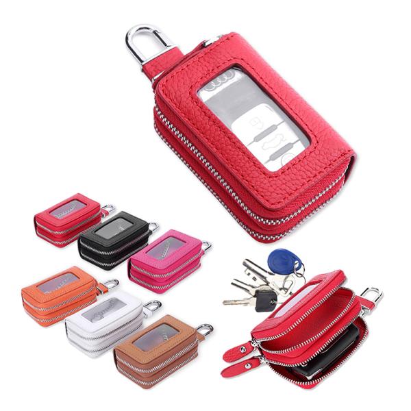 スマートキーケース レディース 革 2個収納 エンジンスターター チェーン ファスナー 持ち運び おしゃれ 窓付き コンパクト 収納 高級感 シンプル 車 送料無料
