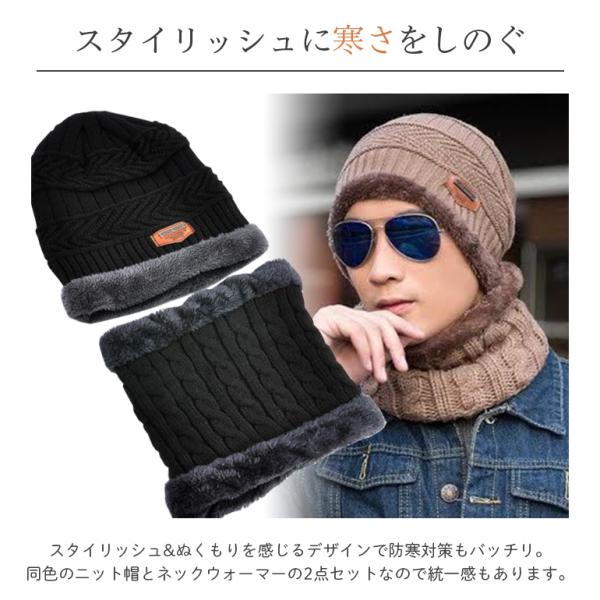 ネックウォーマー ニット帽 帽子 フェイスマスク ビーニー スヌード マスク メンズ レディース 2点セット ふわふわ 防寒 裏起毛 ウィンタースポーツ 送料無料