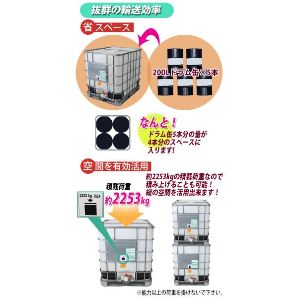 1000Lの大容量タンク!パレット付き!段積み可能!省スペース!