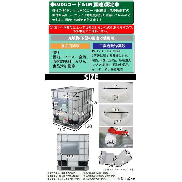 ●最大比重1.9までの内容物が充填出来、食品用溶液、薬用溶液等を大量に運ぶことが出来るIBCタンクです!