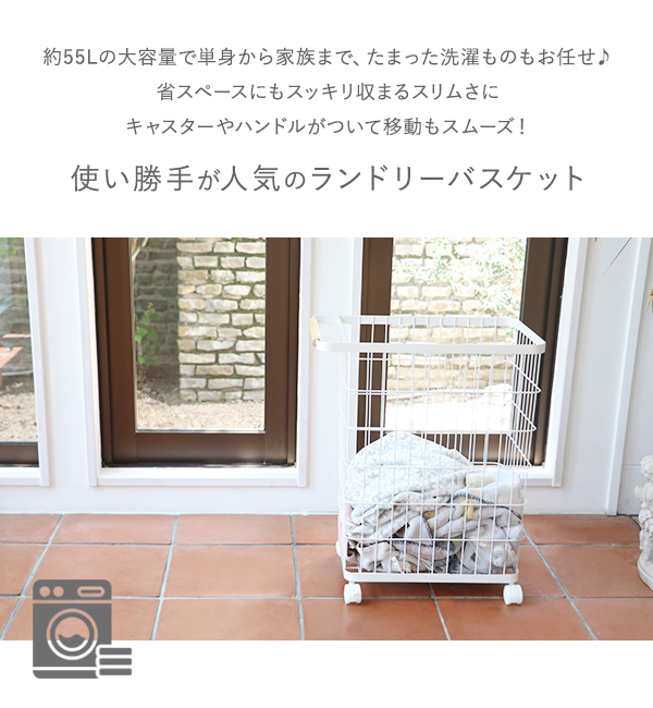 ■単身でも家族でも使える約55L大容量!ハイタイプののランドリーバスケットです。