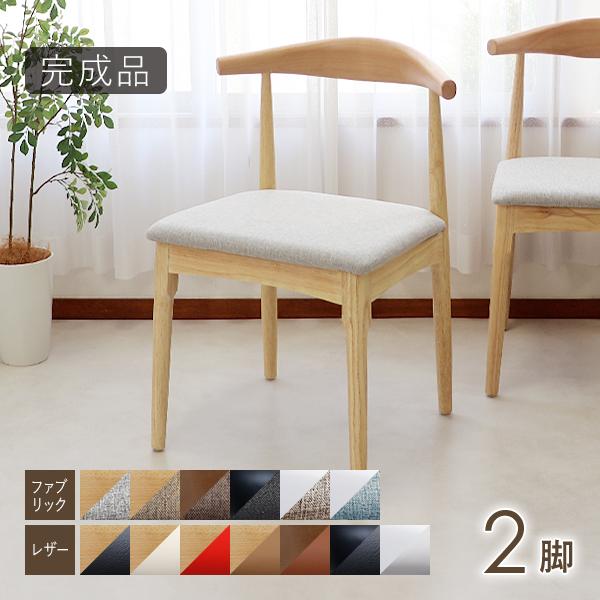 ダイニングチェア 天然木 ラバーウッド 2脚セット 北欧チェア 木製 曲木 レザー ファブリック 完成品 無垢材 エルボー リビング イス 椅子 選べるカラー