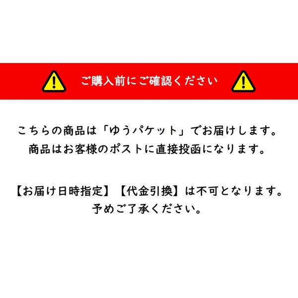 ゆうパケットでお届けになりますので、【日時指定】【代引支払い】はお選びいただけません。予めご了承ください。