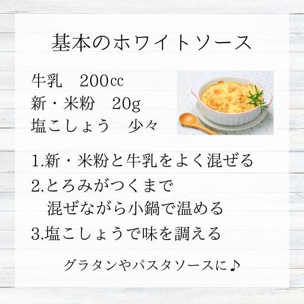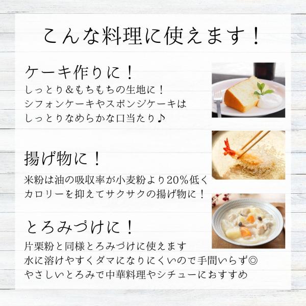 熊本県産うるち米を100%使用したお菓子・料理に幅広く使える米粉です。