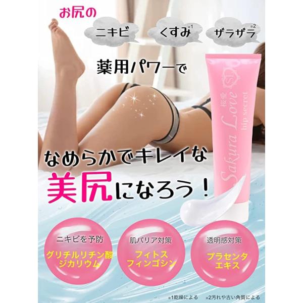 お尻のポツポツ・ザラザラ・ニキビに 有効成分プラセンタエキス(1)グリチルリチン酸ジカリウムでケア 魅惑 医薬部外品 お尻 ヒップケア hip secret おしり
