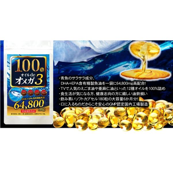 オメガ3 サプリメント DHA EPA 必須脂肪酸 アマニ油 えごま油 送料無料 100%オイルdeオメガ3(大容量約6ヵ月分/180粒)