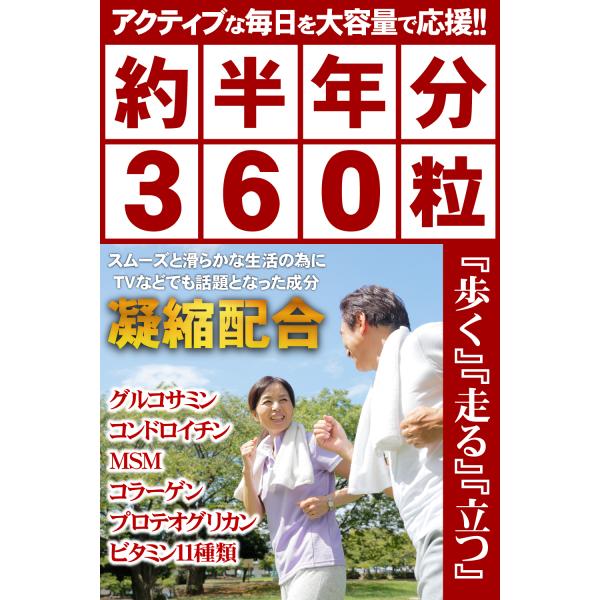 ●歩く、立つ、座るを繰り返す日々にたっぷり実感!!続けてほしいから大容量約半年分360粒でご提供<BR>
